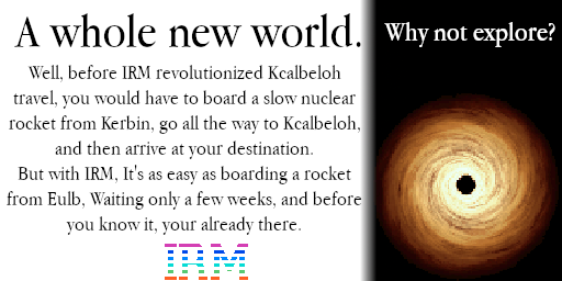 IRMAd1.png (71K) - Joke Ad for my KSP Playthrough, named IRM (Interplanetary Rocket Machines).